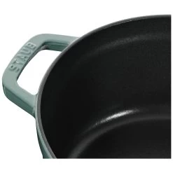 24 cm rund cocotte fra STAUB i farven white truffle. Cocotten fra har en mat, sort emalje på den indvendige side. Denne emalje intensiverer madens naturlige smag og er særdeles effektiv til braisering og langtidsstegning. Perfekte resultater opnås takket være lågets specielle nedbørseffekt og knop-struktur. Den franske stegegryde er egnet til alle varmekilder, inkl. induktion og ovn.